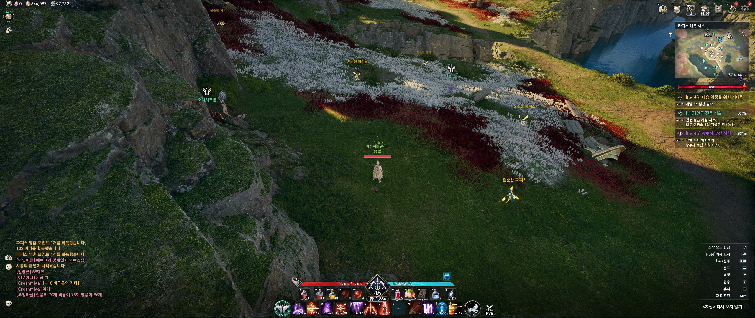 새벽의 레기온 기지에서 조금 나오시면 절벽 아래쪽에 파피스 6마리가 있습니다
